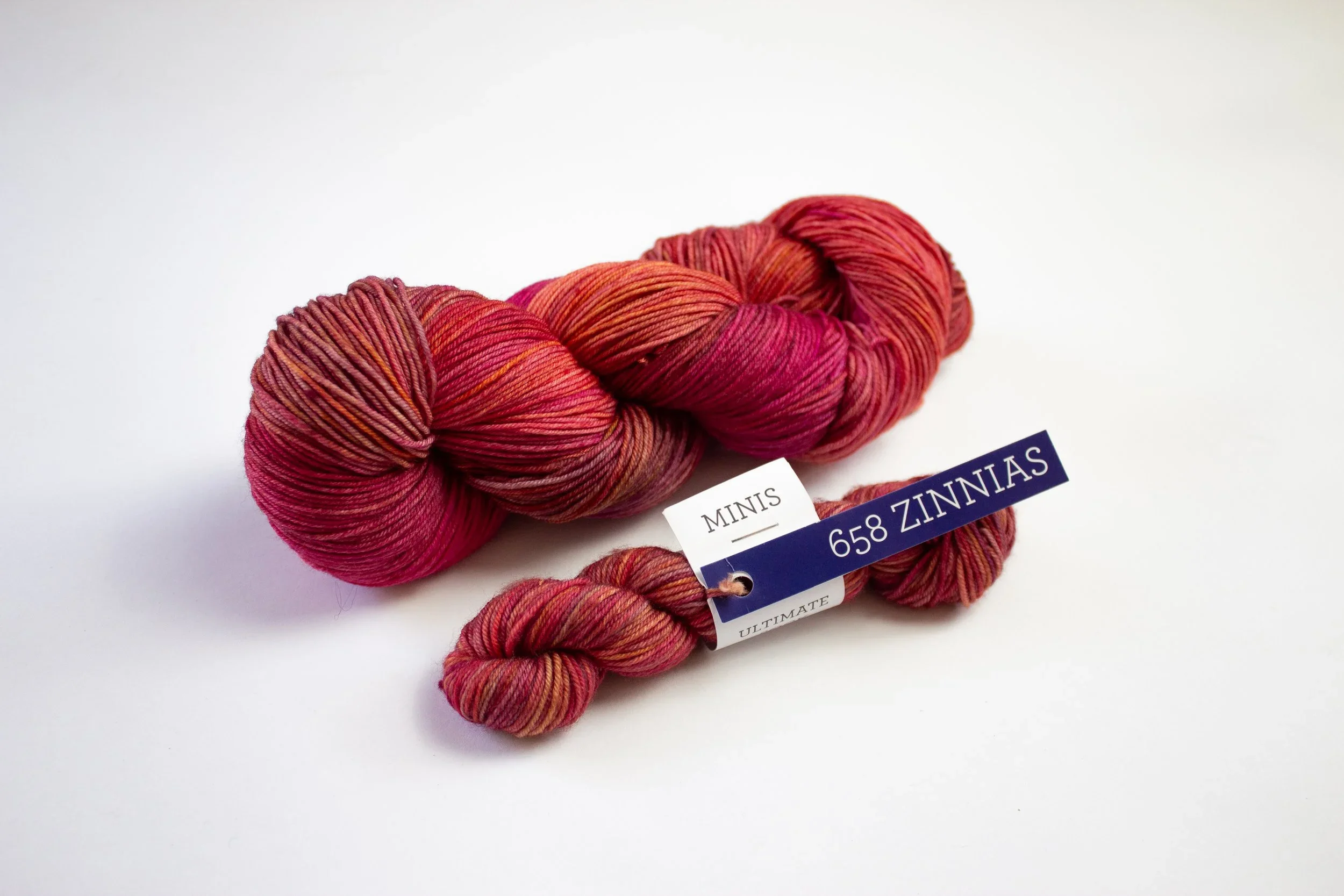 Upea käsinvärjätty fingering-vahvuinen merinovilla-sukkalanka.